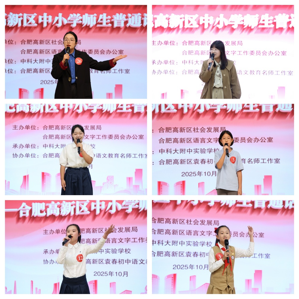 为推广国家通用语言文字,充分发挥语言的纽带作用,以铸牢中华民族共同体意识,10月14日,“合肥高新区中小学师生普通话大赛”在中科大附中实验学校成功举办。赛事汇聚全区近80名师生同台竞技,他们精准发音,尽显音韵之美;深情表达,传递情意之切,共同奉献了一场精彩的语言文化盛宴。