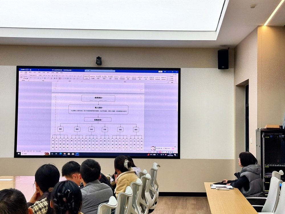 会议尾声,挂职副校长高金燕以中科大附中讯飞小镇学校(筹)的德育体系构想为范例,展示了“人人都做德育,事事都是德育,处处都有德育”的特色德育体系的建设思路,为学校后续的德育体系完善提供了可供参考的实践范本,引发老师们的深入思考与交流。