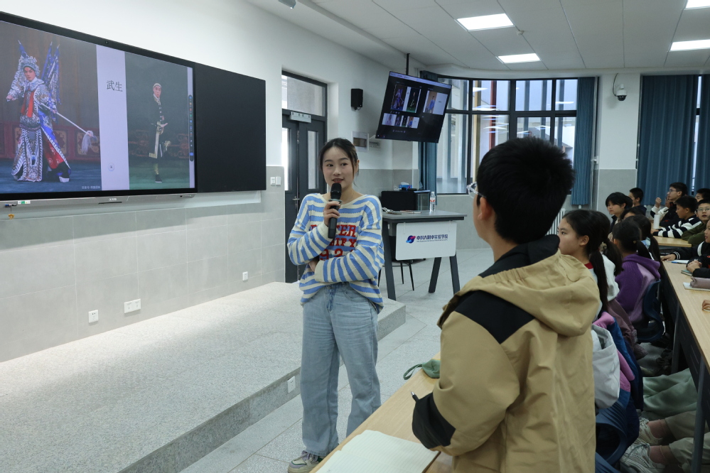 在活动的交流环节,杨晨晨老师与同学们探讨了京剧艺术在当代的传承与发展。
