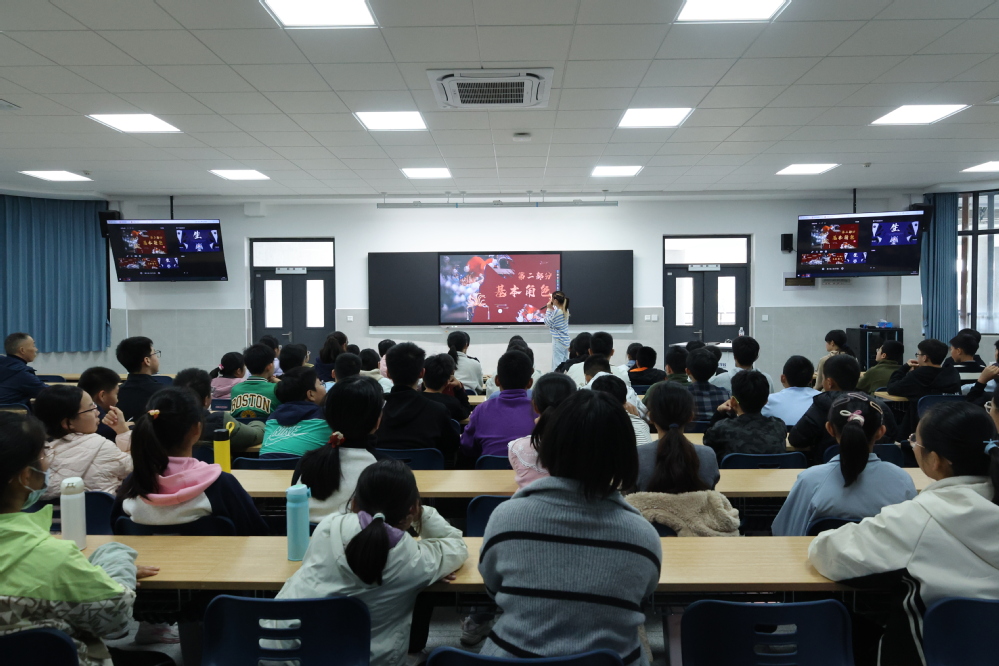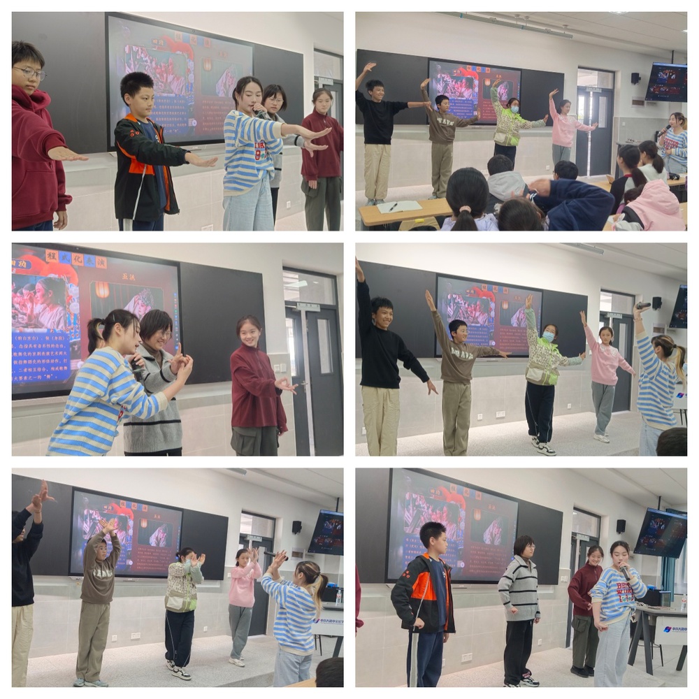 在杨老师的鼓励与指导下,同学们踊跃登台,亲身体验京剧表演的细节与韵味。从旦角的兰花指法,到武生的身段步态,从一句念白的声腔处理,到一段动作的节奏拿捏,同学们在模仿中体会着“一字一韵皆功夫,一招一式有讲究”的艺术准则。台上学得认真,台下掌声不断,现场气氛热烈。