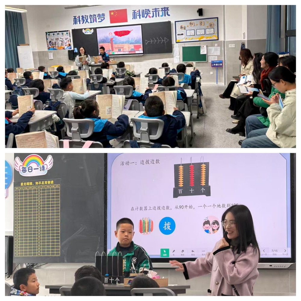 活动伊始,马应飞一行深入二年级课堂,观摩了两节精品课。我校小学语文教师袁慧敏执教《刘胡兰》一课,通过情感朗读、同桌研讨等方式层层推进,引导学生感悟革命烈士刘胡兰的坚强不屈与爱国情怀,课堂氛围庄重而富有感染力。小学数学教师朱萌楠执教《认识100》一课,紧密贴合低年级学生的认知规律,巧妙运用计数器等教具,将抽象数字具象化,让学生在动手操作中夯实知识基础,课堂互动积极、气氛活跃。