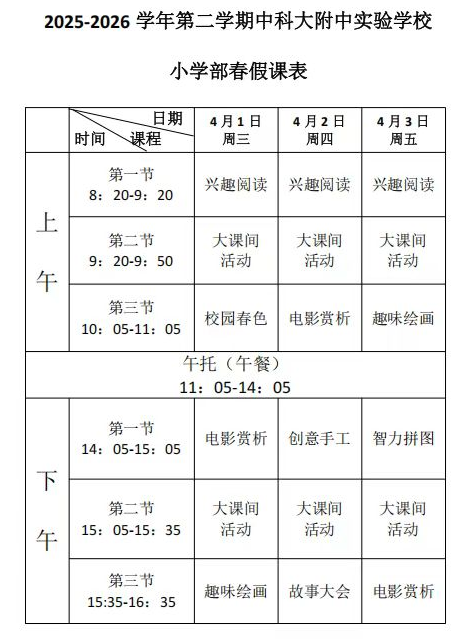春假托管不“缺位” 守护成长暖人心——中科大附中实验学校春假托管服务温情启幕