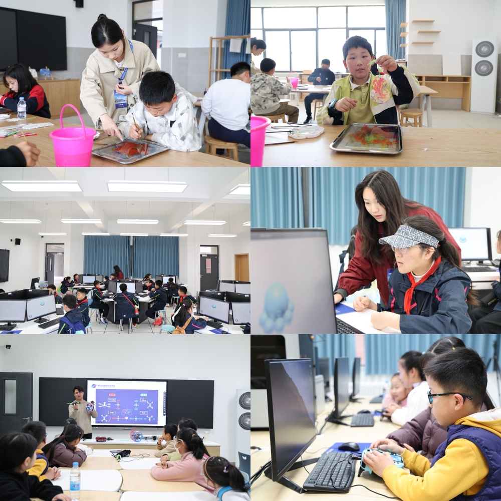 “智控飞行”逐凌云:“智控飞行”课堂则彻底点燃了现场的热情。随着无人机呼啸而起,在同学们的精准操控下平稳飞行、灵活转向,古老的飞天梦想与当代尖端科技在此刻完美融合。创新的种子,仿佛也随无人机一同翱翔于蓝天。