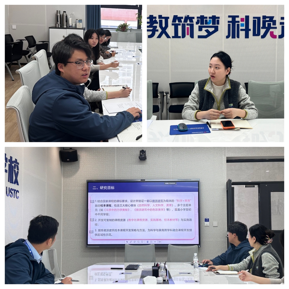 为深入推进素质教育,探索跨学科融合育人新路径,11月13日上午,我校在小学部428会议室召开 “科学与美育融合的徽派建筑校本课程开发与实践研究”课题研讨会。校长徐磊,副校长徐晓宏以及课题组其他成员参加会议。