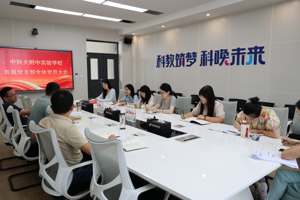 9月12日上午,中科大附中实验学校直属党支部在小学部四楼会议室召开了全体党员大会,会议由党支部书记马运生主持。