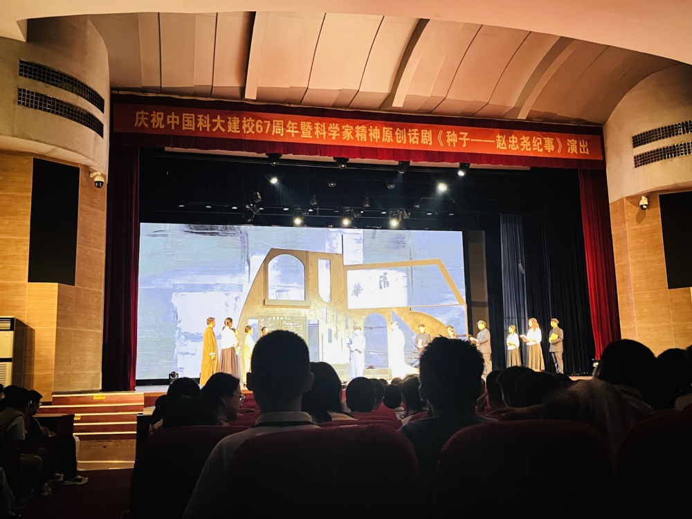 实践活动的最后一站,师生们齐聚中科大东区大礼堂,共同观看原创话剧《种子——赵忠尧纪事》。该剧由中国科大档案文博院、本科生院、团委联合主办,安徽省话剧院担任艺术指导,中国科大师生联合出演。全剧以纪实手法展现了著名物理学家、我国核物理研究和加速器建造事业的开拓者、中国科学技术大学原子核物理和原子核工程系首任系主任——赵忠尧先生在求学与科研道路上的重要时刻。话剧通过生动的舞台艺术,将科学家们面对困难时的坚韧不拔、追求真理时的严谨求实、奉献国家时的无私忘我表现得淋漓尽致。剧情高潮迭起,学生们不时发出雷鸣般的掌声,情不自禁地向这位科学先驱致以最真挚的敬意。科学家精神在那一刻不再只是书本上的概念,而是化为有血有肉、可亲可感的榜样力量。