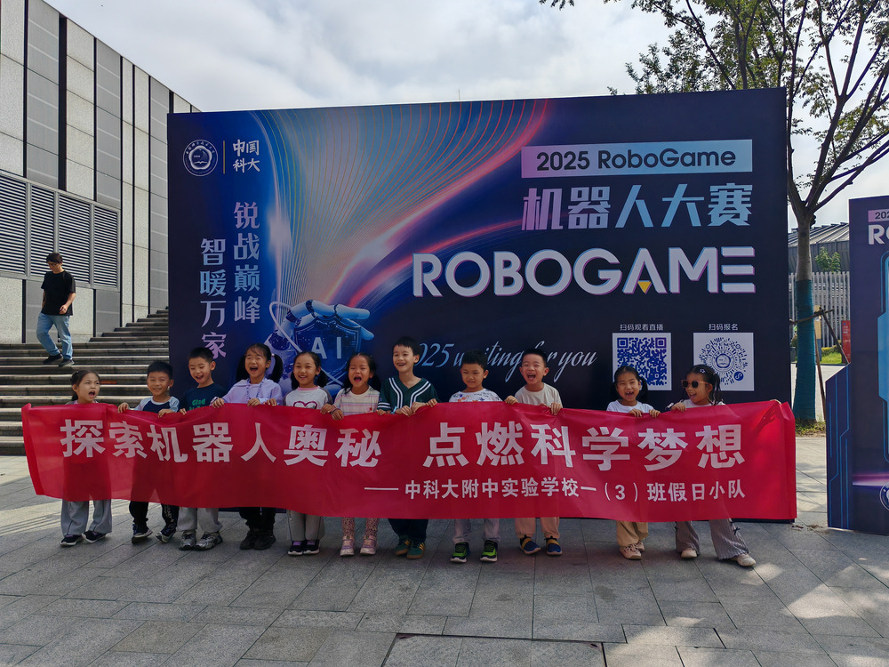 为践行“探万物之本,筑成长之基”的办学理念,10月4日下午,我校一、二年级的部分学生以“探索机器人奥秘,点燃科学梦想”为主题,走进中国科学技术大学中校区综合馆,直击 2025RoboGame机器人大赛现场,在科技实践中植下科学种子,涵养科学素养。