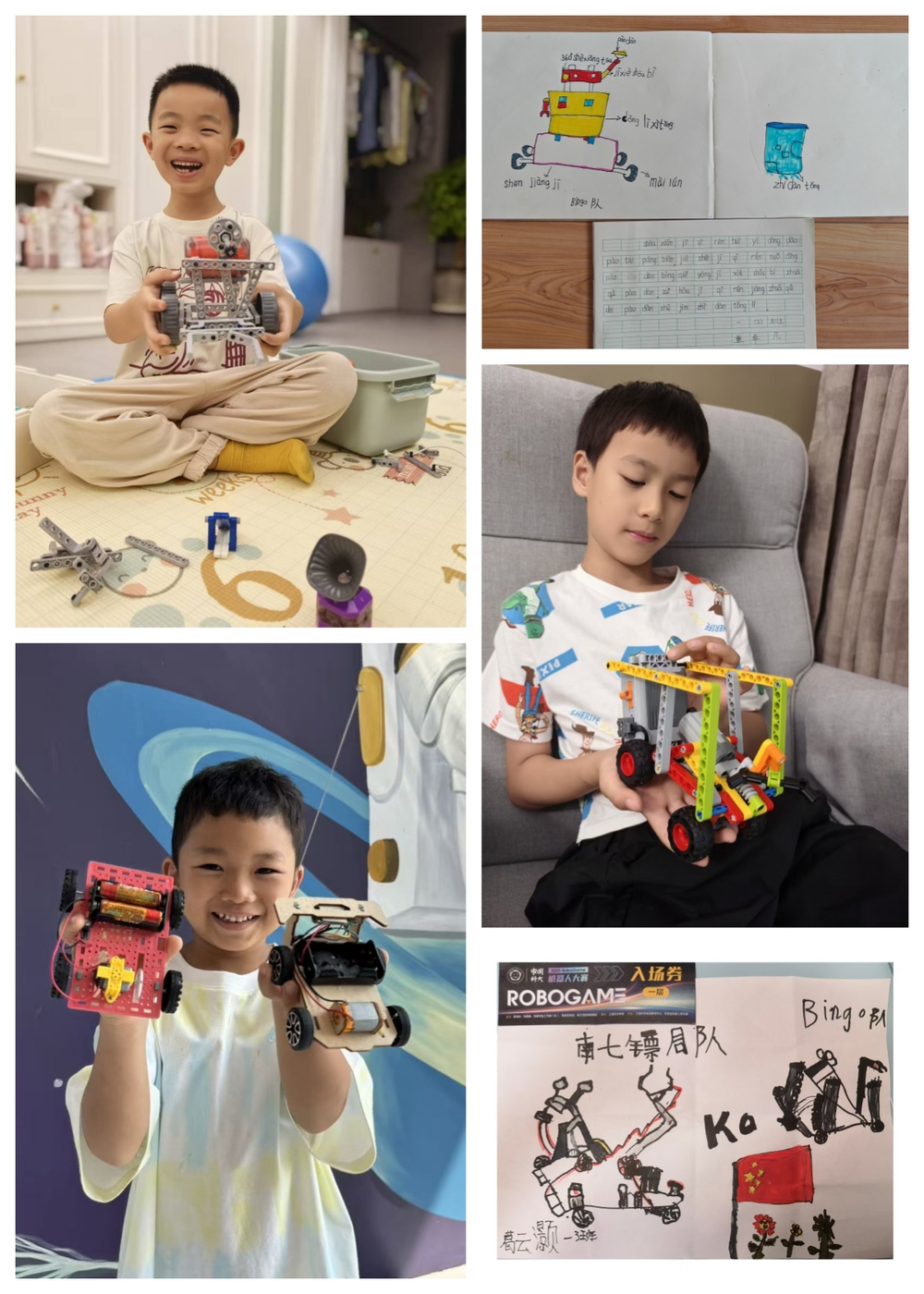 科技之旅的返程,不是终点,而是另一个起点。为了将短暂的体验转化为持久的养分,同学们通过“画一画最喜欢的机器人”“给家人讲一讲比赛场景”“用积木搭建小机器人”等形式延续活动收获,将直观体验转化为创造性表达,不仅深化了他们对科技的认知,更让创新的种子在实践中悄然生长。
