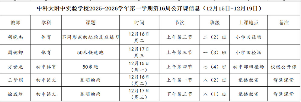 第十六周(12.15-12.19)公开课信息表