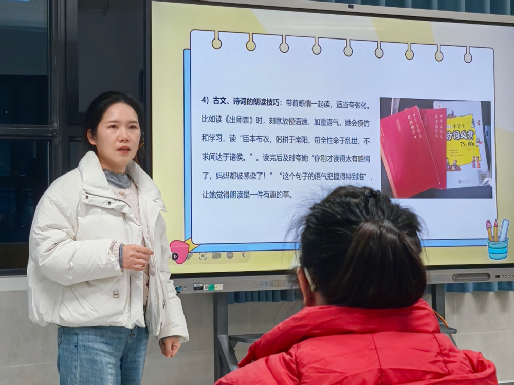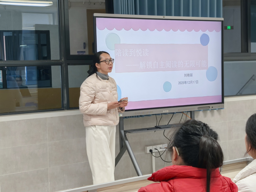 为搭建家校共育桥梁,破解低年级孩子阅读培养难题,助力家长实现从“陪读”到“悦读”的科学转型,12月17日,中科大附中实验学校德育处联合二年级组精心策划的第二期家长沙龙活动在小学部合班教室如期举行。活动由二年级组语文老师袁慧敏主持,位优秀家长代表分享经验,现场家长专注聆听、深度共鸣,在思想的碰撞中探寻自主阅读的培育密码。