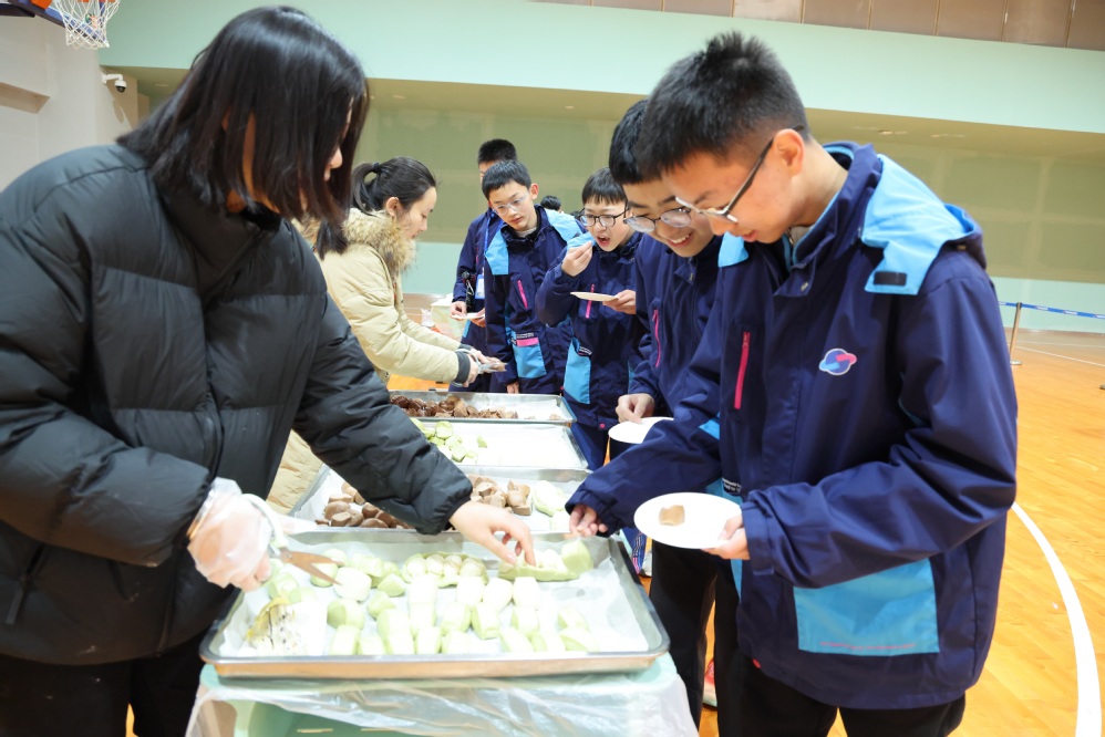 12月23日中午,篮球馆变身“美味梦工厂”——中科大附中实验学校首届“品味·青春”美食节暨劳动教育实践展示活动火热开场!七八年级学生与全体教职工共赴一场色香味俱全的冬日之约,亲手制作、真诚分享、快乐品尝,让劳动的智慧与青春的创意在香气中碰撞交融。